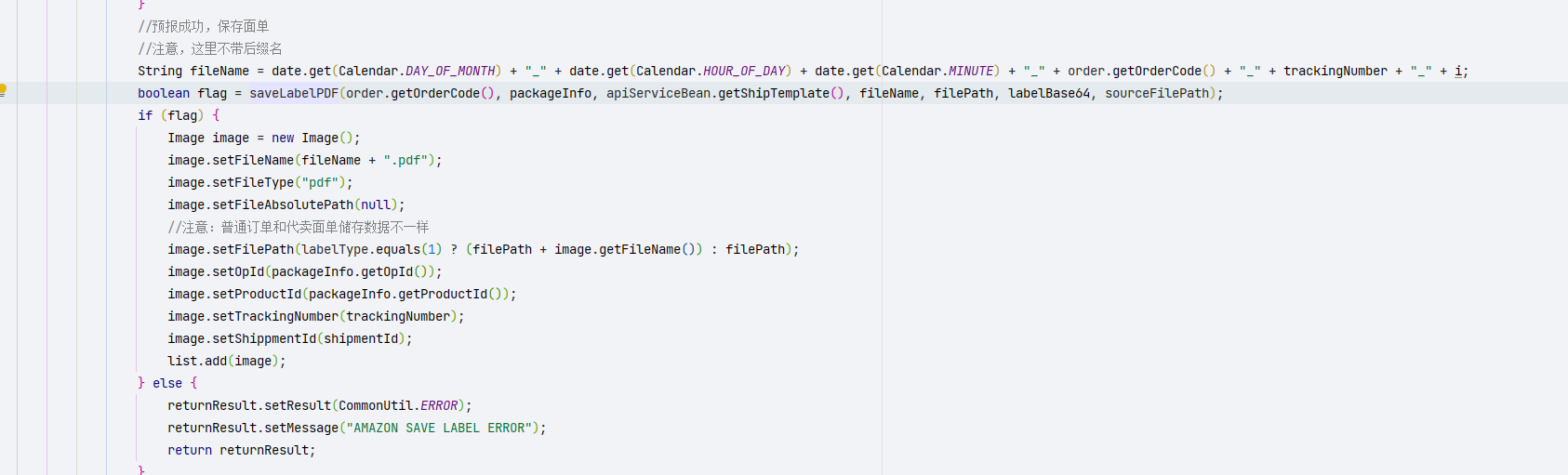 INSERT INTO `westernfulfill`.`ship_template` (`st_id`, `st_name`, `st_path`, `st_status`, `warehouse_id`, `st_create_date`, `st_last_update`, `st_code`, `st_config_type`, `st_label_preview`, `agreemen_customer_code`, `agreemen_customer_name`, `return_unit`, `return_address`, `return_zip`, `return_phone`, `customer_code`, `customer_sign`, `customer_service_code`, `salespeople_code`, `customer_sign_en`, `show_location`, `province`, `city`, `user_id`, `st_order_waiting_status`, `st_custom_tracking_number`, `st_width`, `st_height`, `st_print_mode`, `st_rotate`, `st_print_select`, `cut_start_x`, `cut_start_y`, `cut_width`, `cut_length`, `text_start_x`, `text_start_y`, `text2_start_x`, `text2_start_y`, `size_ratio`, `text3_start_x`, `text3_start_y`) VALUES (26, 'AMAZON标签', '', 1, 0, '2026-03-12 18:09:23', '2026-03-12 18:09:23', 'AMAZON', 0, '', '', '', '', '', '', '', '', '', '', '', '', 0, NULL, NULL, 0, 0, 0, '100', '150', 'pdf', 0, '', NULL, NULL, NULL, NULL, 4, 265, 4, 256, 1.0000, NULL, NULL);亚马逊渠道保存标签时,新增工具方法: