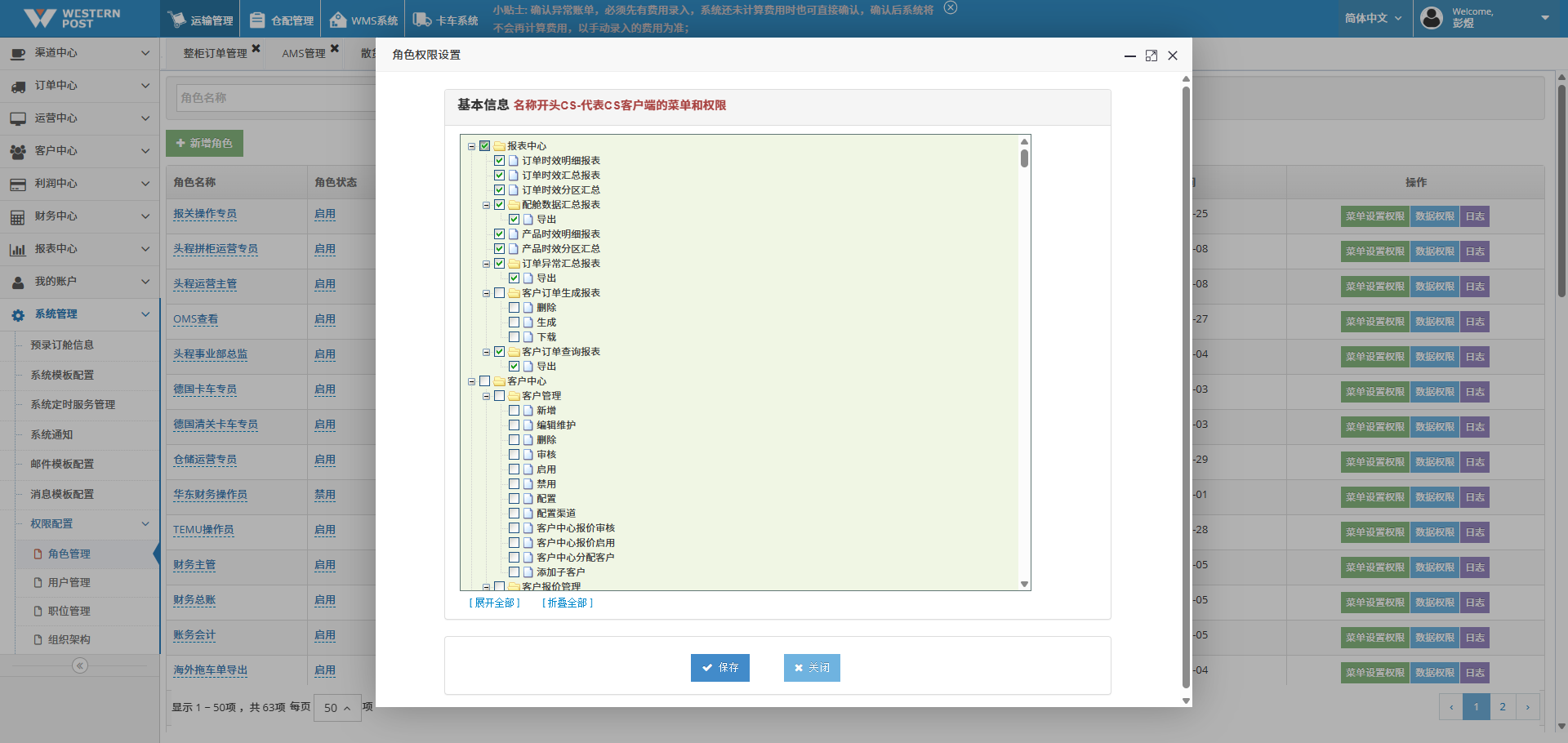 第二步:【角色管理】-【设置角色权限】